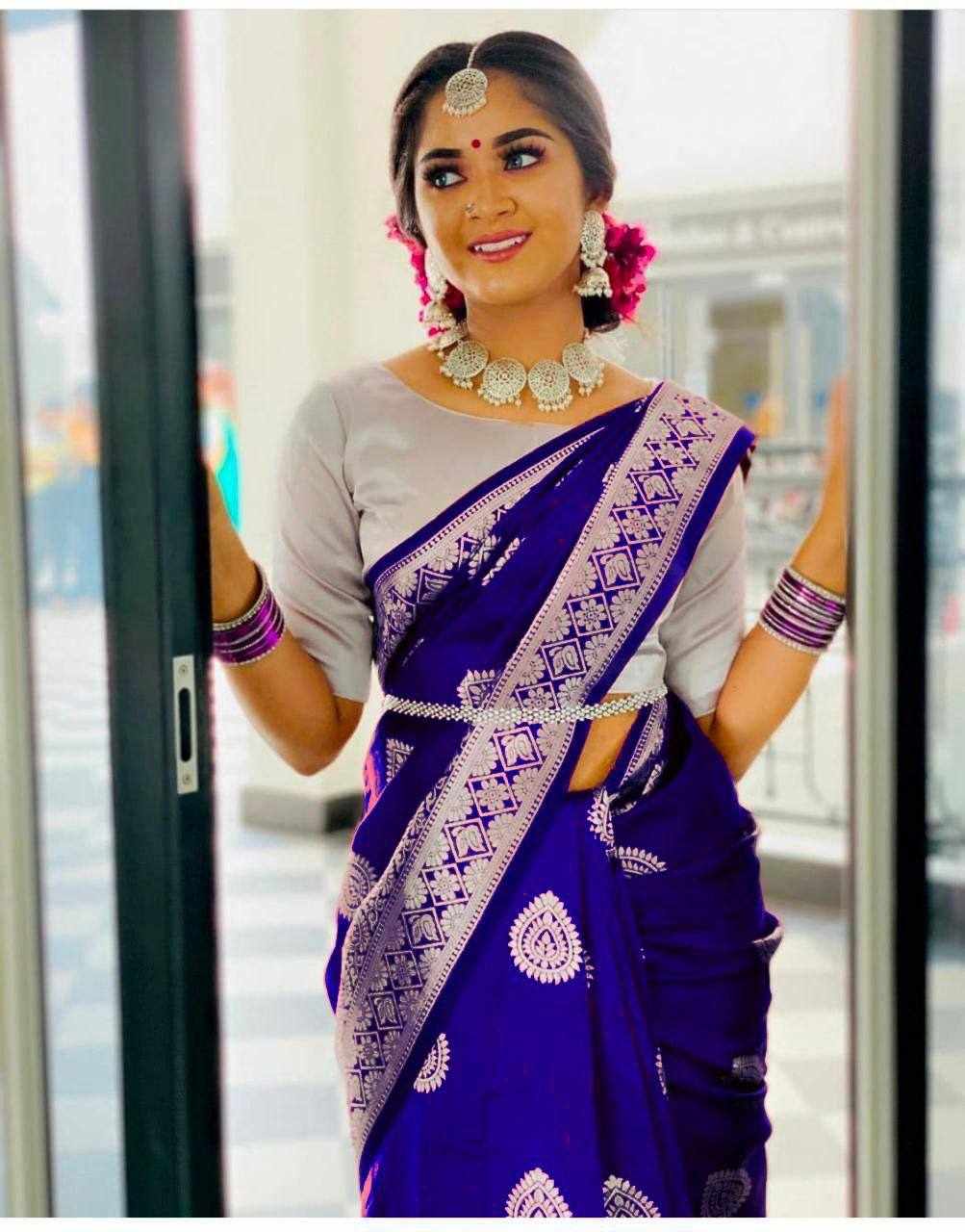 | Name : | KPR 214 BLUE SOFT LICHI SILK SAREE |