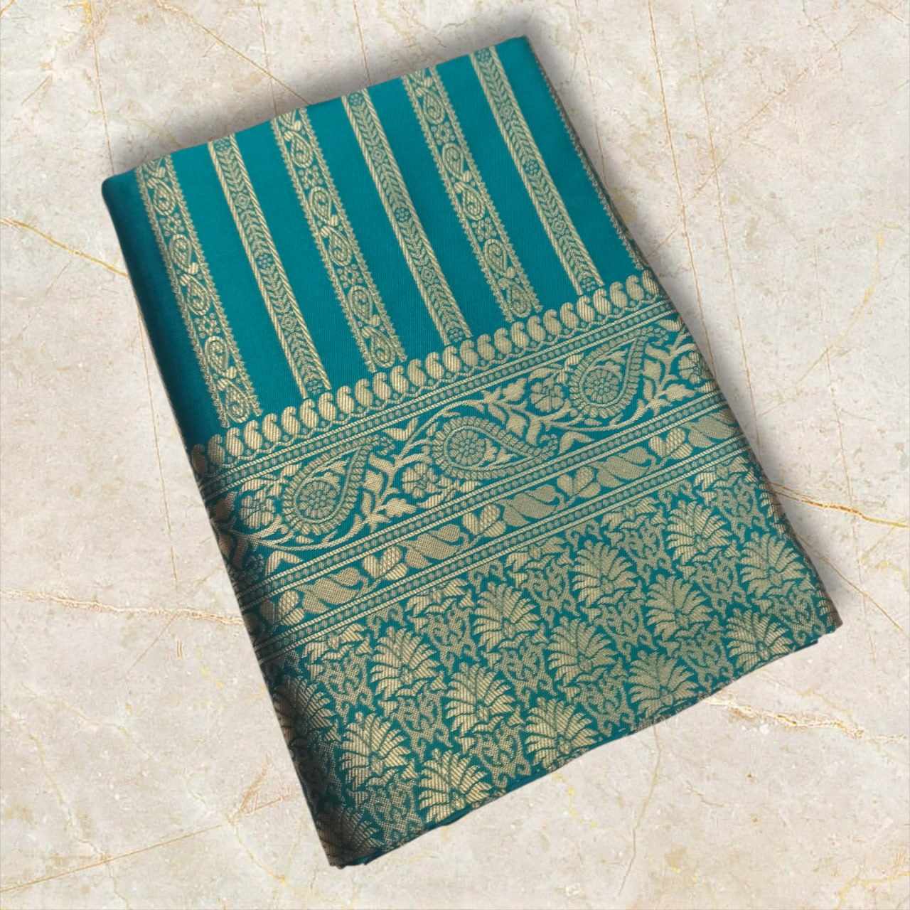 MF 1920 PETROL BLUE BANARASI SOFT LICHI SILK SAREE