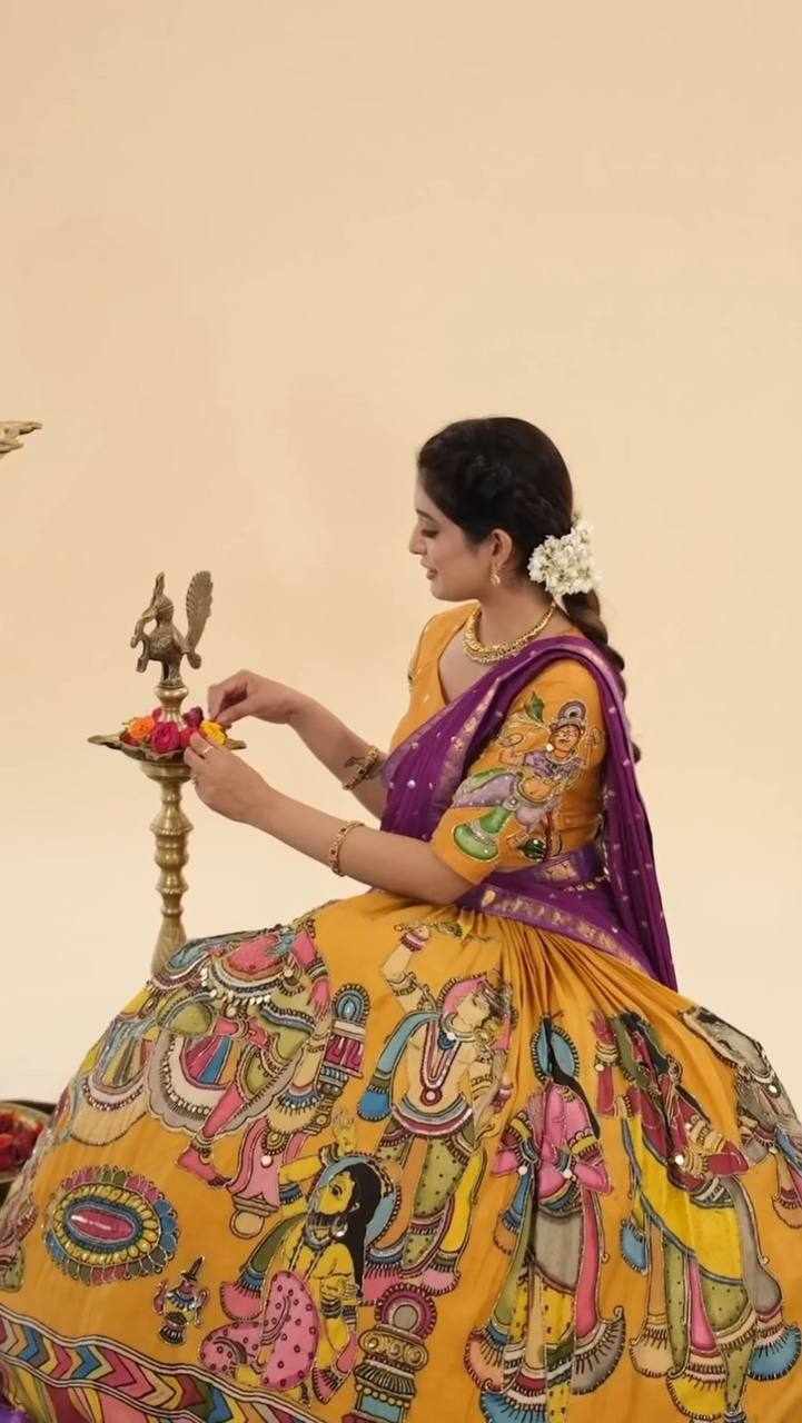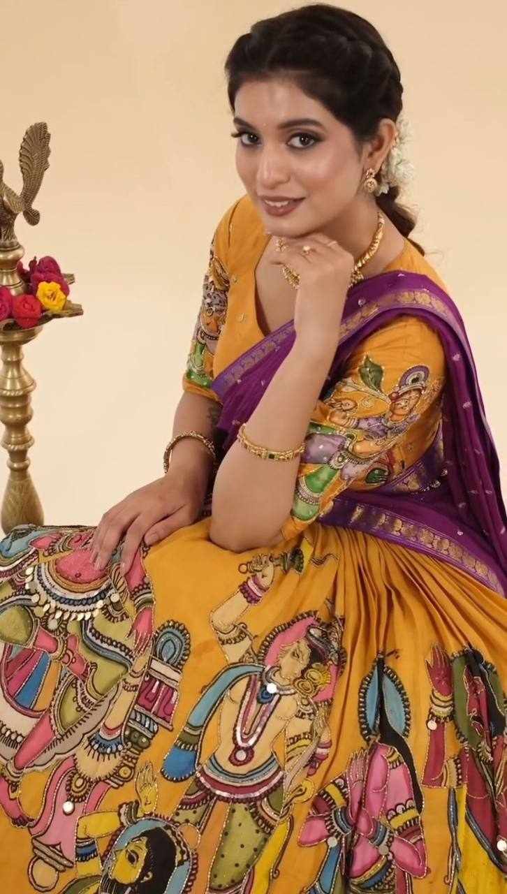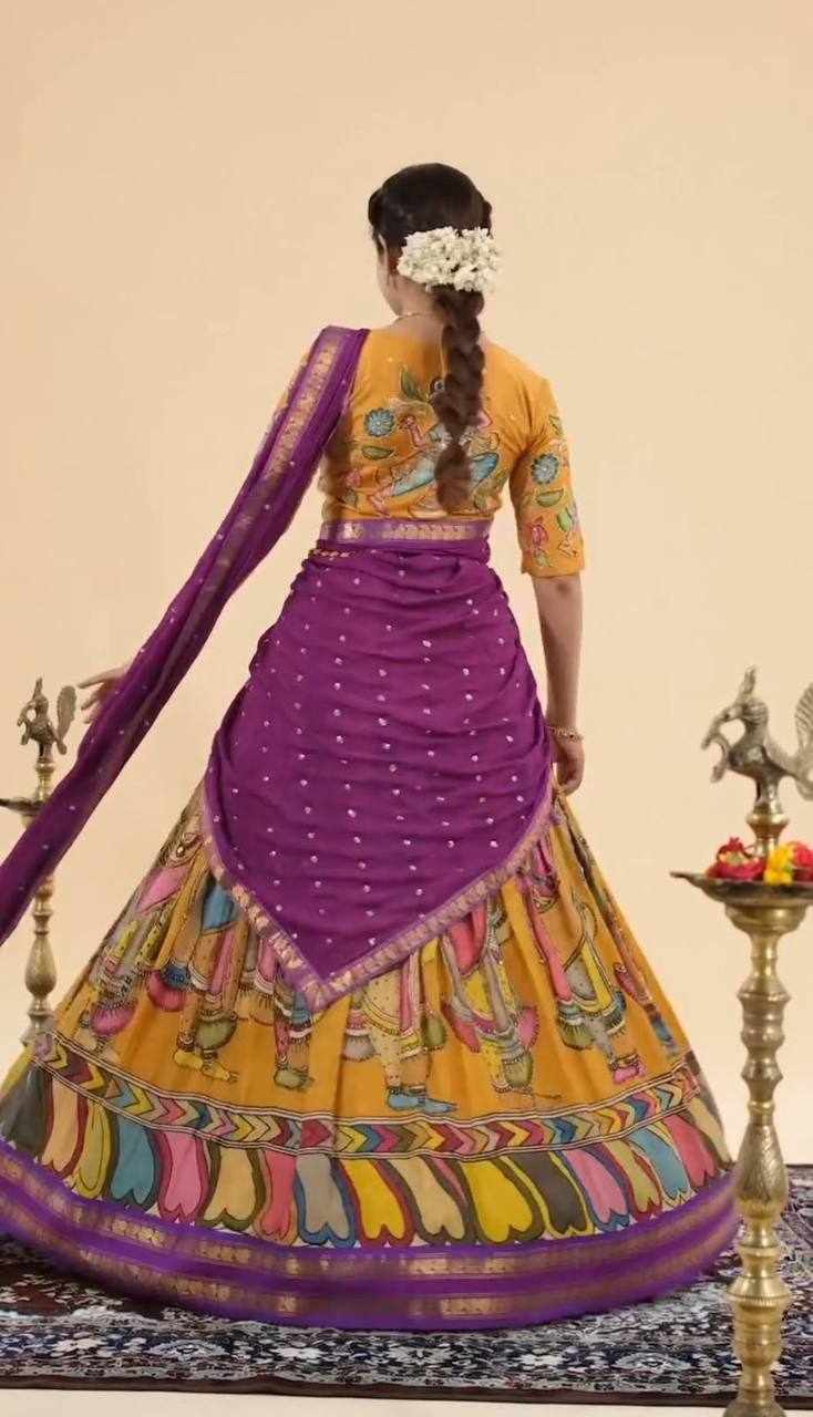 Pc 450 Chent Crep kalamkari print Lehenga